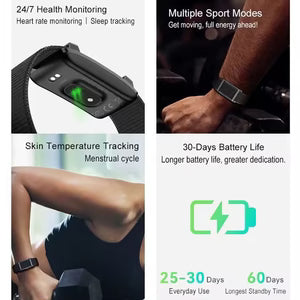 سواء كنت تمشي أو تجري أو تمارس التمارين أو تنام، يقوم هذا السوار الذكي بتتبع تقدمك وتحفيزك لتحقيق أهدافك الصحية.![]()